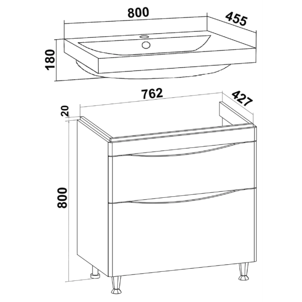 Тумба с раковиной AVS Гармония 80 белая (раковина 01 черная матовая)
