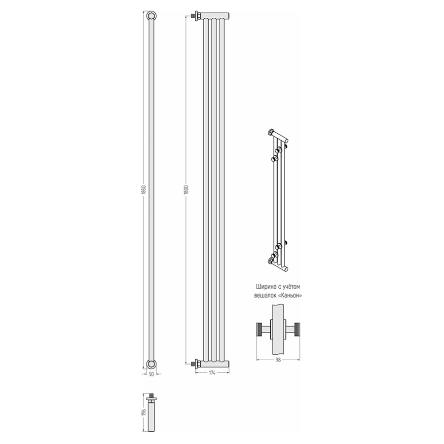 Полотенцесушитель водяной Сунержа Хорда 10х185 черный матовый