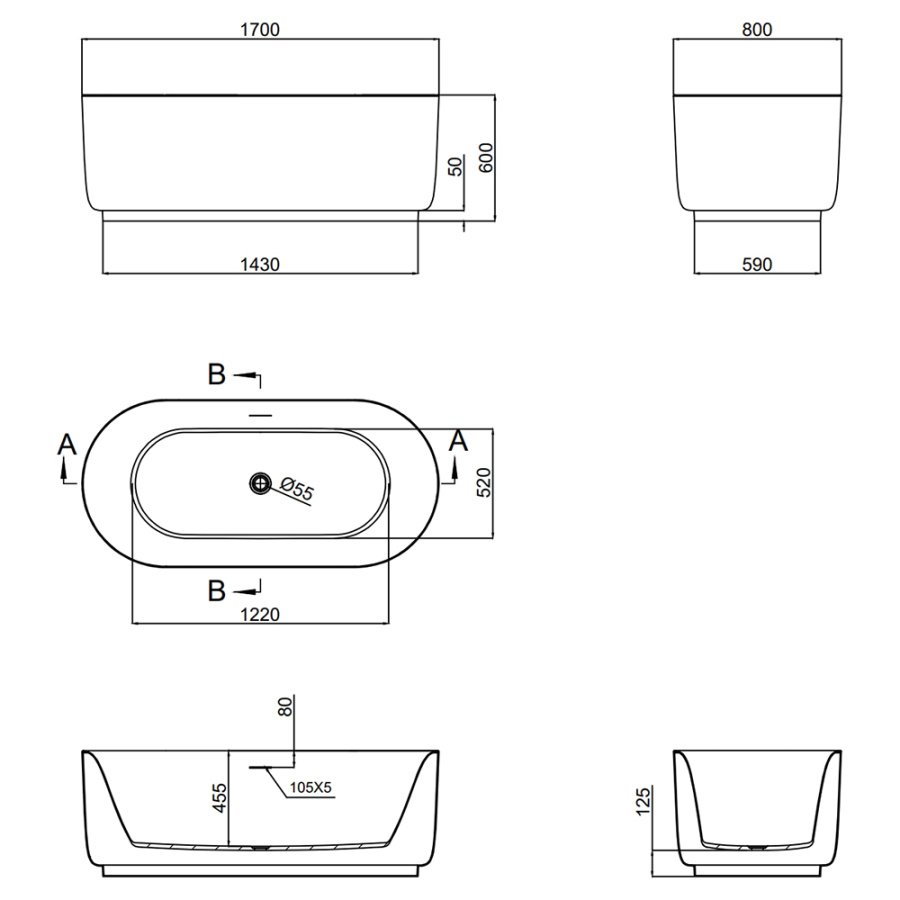 Акриловая ванна AVS Спарта 170x80 белая с донным клапаном