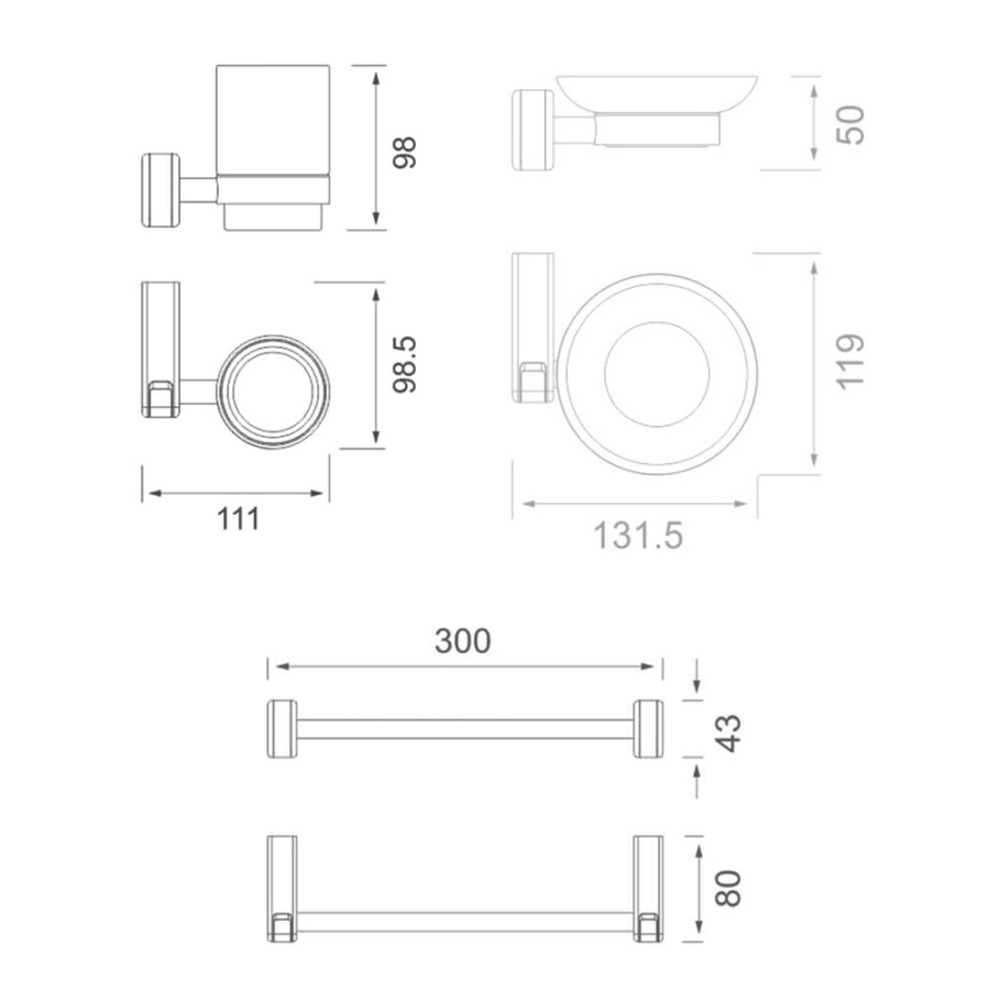 Набор AVS F83 Стакан с крючком+Мыльница+Полотенцедержатель 30