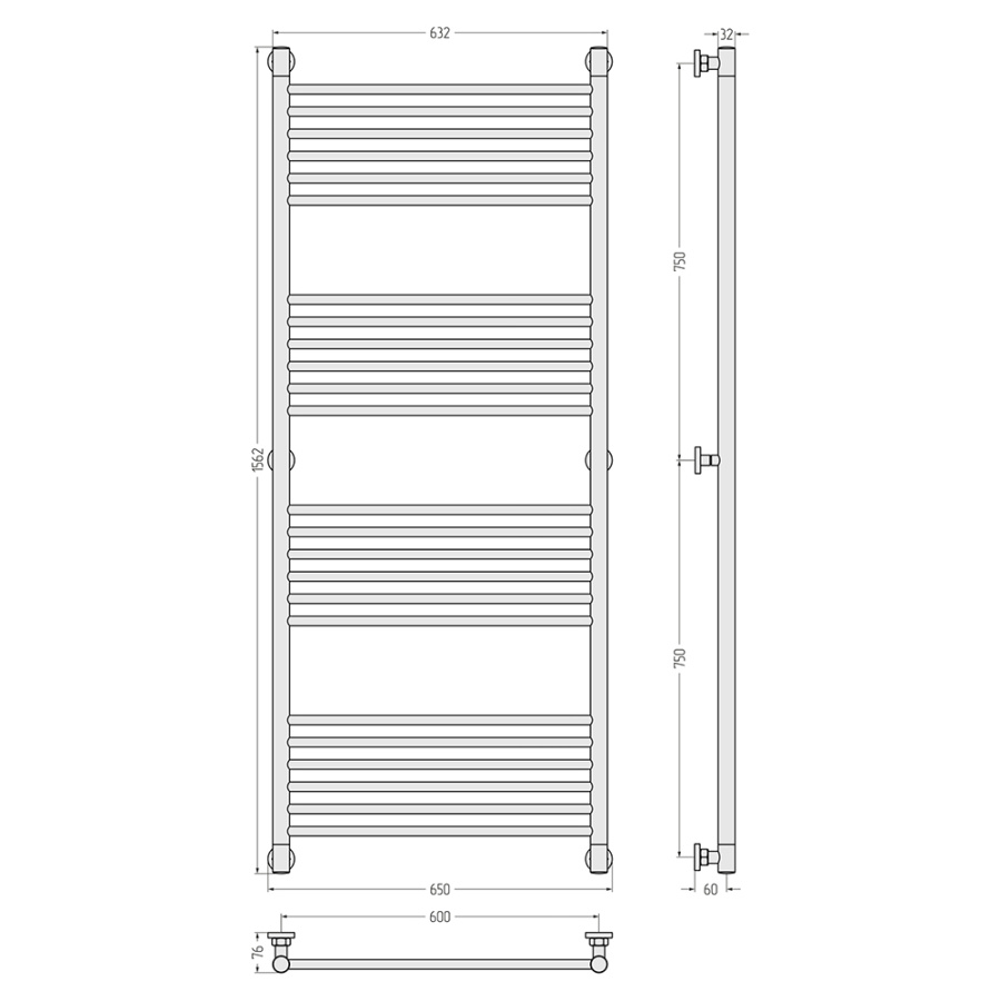 Полотенцесушитель, угловые элементы, спускной клапан, отражатели, эксцентрики и опоры кронштейнов, декоративные заглушки, комплект прокладок, шестигранные ключи, дюбели и саморезы
