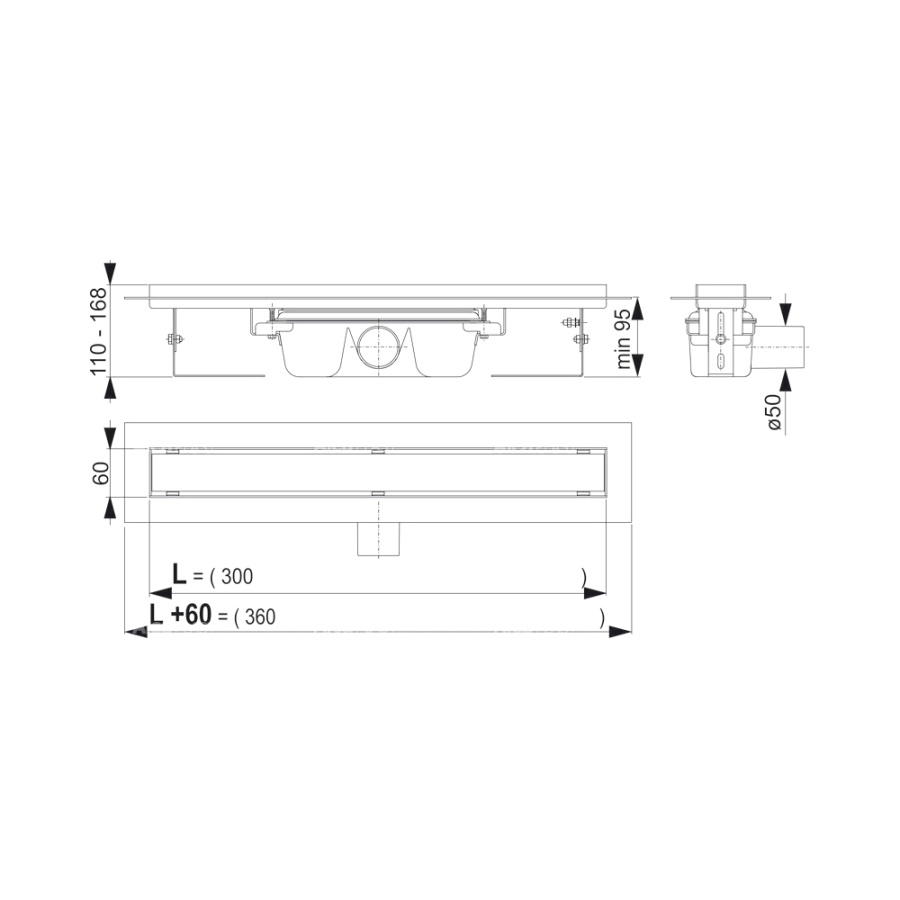 Водоотводящий желоб с порогами Professional 300 мм ALCAPLAST APZ6