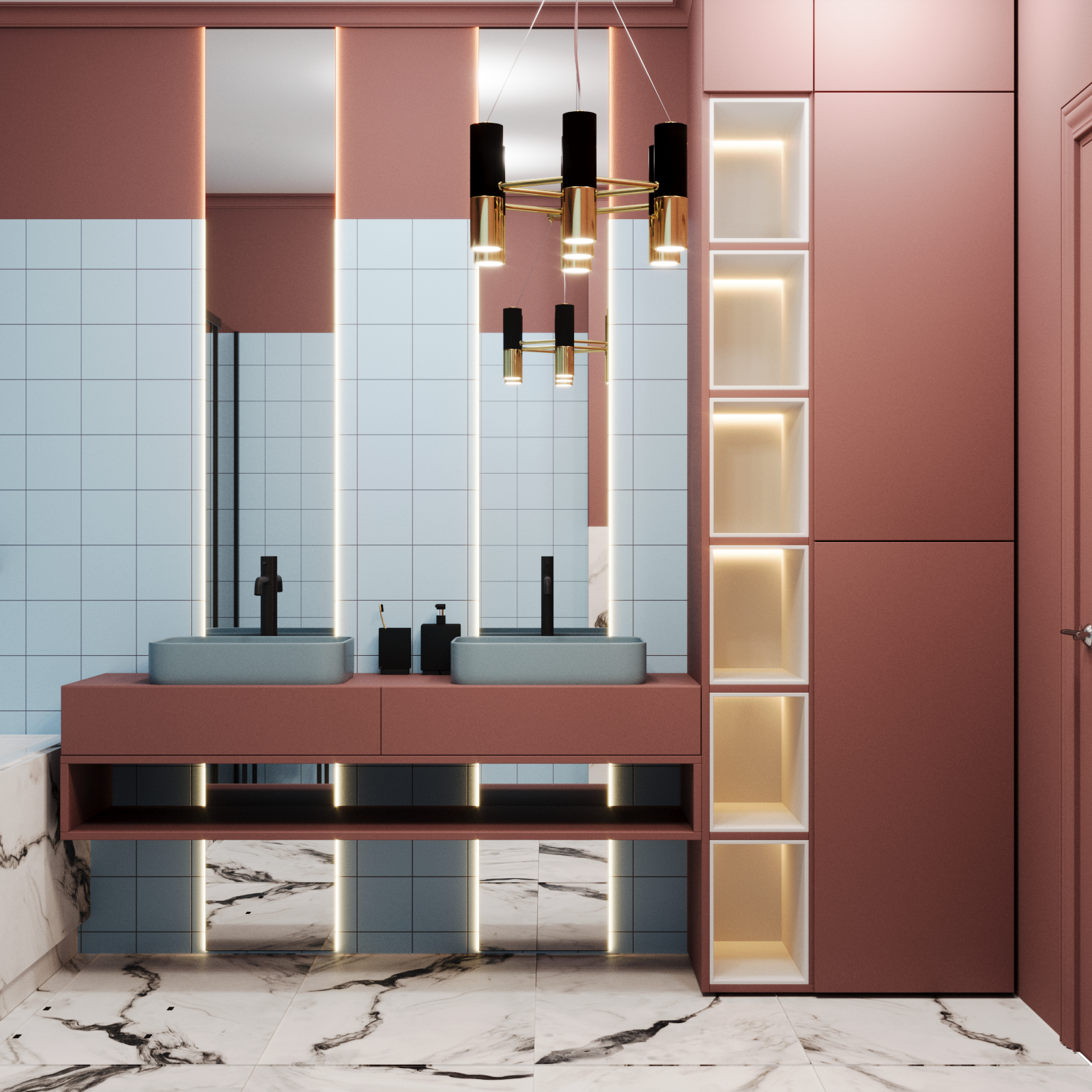 Использовала цветную сантехнику Аквамир